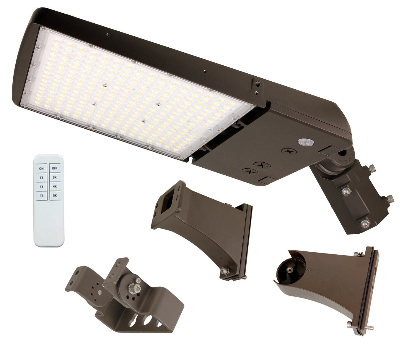 Expanding upon field-selectable options and features, Max Lite has launched its new AE Switch Area Light that includes an optional remote control. At its core, the low-profile luminaire offers on-board switches to allow field-selection of wattage, CCT, and optical distributions. The optional IR remote control allows users to set both the CCT and distribution type from the ground, eliminating ladders, lifts, and bucket trucks during commissioning. Coupled with a variety of mounting options and accessories and a toolless housing, this area light provides a highly configurable solution for exterior applications.
