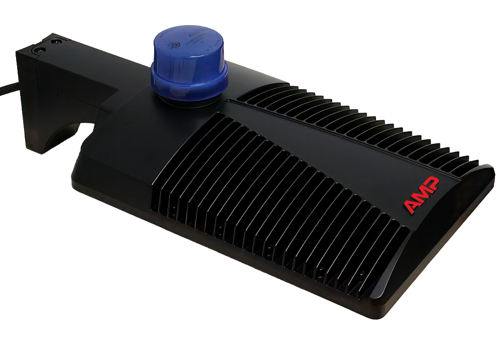 11. AMP Lighting announces the Modern Area Light. A 16-lb rugged site-lighting solution, the Modern Area Light features a selectable lumens switch and a color temperature switch offering a range of outputs from 6,000 to 13,000 lumens as well as a range of color temperatures from 3000K to 5000K, respectively. IP66-rated and made of die-cast aluminum, fixtures are DarkSky compliant, UL certified, and DLC Premium Listed, and have a corrosion-resistant, marine-grade polyester powder-coat finish.