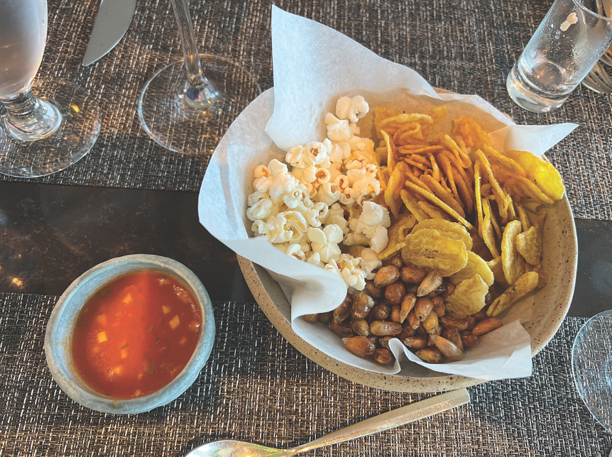 Oh, and one more note on the food. Many traditional Ecuadorian meals begin with a bowl of popcorn, fried plantain chips and crunchy corn kernels, served with a spicy pineapple dipping sauce. We enjoyed these savory snacks on multiple occasions both on the ship (pictured below) and off, and I’ve been craving it every day since.