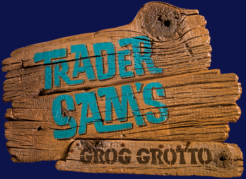 Tucked away in a curious corner of the Great Ceremonial House at Disney’s Polynesian Village Resort is one of the most distinctly themed watering holes you’ll find anywhere at Walt Disney World Resort. Seemingly hidden by design, Trader Sam’s Grog Grotto features an intimate interior festooned with ancient artifacts and exotic treasures (some of which unleash a special brand of magic, depending on what you order), along with an open-air Tiki Terrace. Like its kitschy California cousin (Trader Sam’s Enchanted Tiki Bar at Disneyland Hotel), Trader Sam’s Grog Grotto is named with a nod to famed Adventureland explorer Trader Sam, who, since being bitten by the bartending bug, has searched the jungles for ingredients to mix into his magical libations.