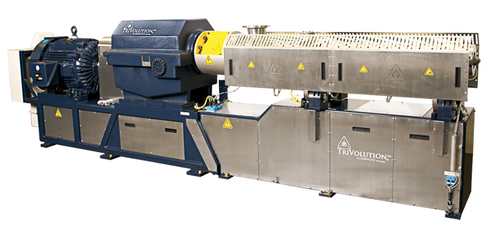 TriVolution can be used, for example, to compound bio-based fibers into polypropylene for RheTech’s RheoVision compounds. In this application, it was found to have better distributive and dispersive mixing control compared to a TSE, without excessive heat generation. TriVolution can use up to 80% less overall energy consumption than a comparable TSE, reports the company, and has about half the footprint of a conventional twin-screw system.